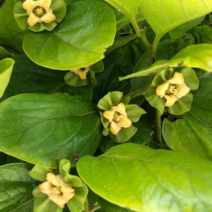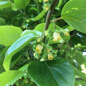 コレもまた、種子から育てたカキノキです。 やっと花が咲きました💛 数年前に、干し柿を作る為に渋柿を買いました。その種子を蒔いたものです✌️ この花は雌花なので、雄花の花粉と受粉しなければなりません。 この木には雄花は見当たらないので、柿はならないかもしれません😢