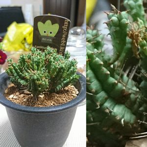ユーフォルビア サブマミラリス(姫麒麟) この樹型が気に入った😀 メキシカンハットかぶって 片手を上げて「オーラ!」 って感じ🤗 家での愛称は「アミーゴ」 ✨🌱✨