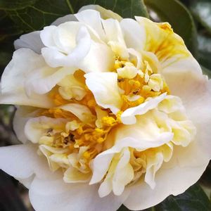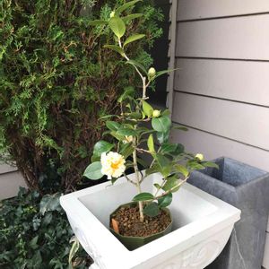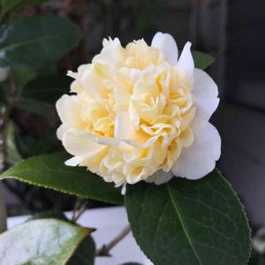 黄河椿 クリーム色の唐子咲 今年から仲間入り。 12月始めに咲き始めました。 ベランダから玄関脇に移動。