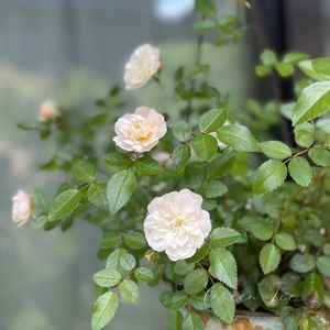 小さなブリキ鉢のハンギングで育てて 3年目のグリーンアイス。 ブリキ鉢のサビ具合が その年月を物語っています。 植え替えもしていないし、 何度か貝殻虫にもやられながらの開花。 私にとってミニバラは ハンギング育てが正解です✨