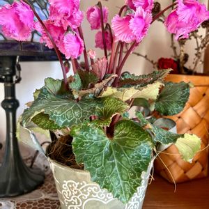 “ミニシクラメン” 頂きものです(。>ㅅ<。)♡*。 シクラメン、大好きですが上手く育てられないので最近は買わないようセーブしてました 数年ぶりにわが家にシクラメンがやって来ました〜⸜(*ˊᗜˋ*)⸝⋆* やっぱり可愛いわ〜♡ シクラメン=陶器の鉢と言う勝手な先入観がありました(;´д`) あえてブリキ鉢🥫に入れてみました 意外と良い♡