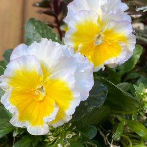 キョトンしたお顔で 愛嬌のあるビオラお嬢様 お早うございます 今週も大好き過ぎの パンビオから、スタート ➀ビオラ アイクルールとアイビーの 簡単寄せ植え ③(^^ゞ歪んでる🙄🤭 →側の❁ワインレッドカラーの名前が??? (^^ゞ申しわけ有りません 分かり次第 名前載せます🙇♀ (❁フェデネージュ ボンソワレ)でした。 ブリキ鉢は、秋冬に良く使います。 夏場は根を傷めます なので使用せずいたので、 まだ綺麗で。🥰