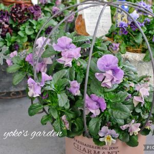 夢中で集めたブルー系ビオラの 濃いめ系と薄いめ系で作った ハンギング寄せ植えの今です。 一緒に植え込んだ葉牡丹は 何度植え替えても🐤につつかれ、 とうとう諦めることに💦 私のお気に入りは 薄めブルーの方でしたが、 写真映えは濃いめの方が良いみたい。 12月25日と27日に 作りたてのpicを投稿してます。 ビオラの色が全然違いますね🙄