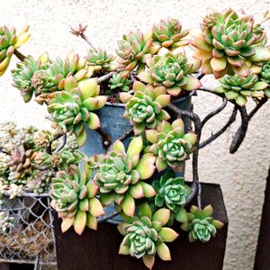 エケベリア 暴れ多肉ぶりは変わりませんが、うっすらピンクに色付いて、花芽もいくつかでてきました。 緑とピンクのコントラストがなんとも言えないですね〜