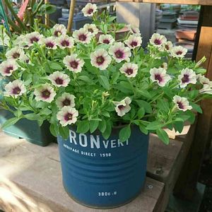 栄養系ペチュニア“ヨコハマ・ピーチファンデーション” 植物にとって植木鉢は、人間でいうと着ている服と同じです。 植えた鉢によって植物の映り方が全く違って見えます。 普段から沢山の植物と色々な植木鉢を扱っていると、たまに「この植物はこの鉢に絶対合うな」ってビビってくる瞬間がありまして。 このペチュニアにも、写真の英字デザインのブルーのブリキ鉢がしっくりくるとビビっときました(笑) 好みは色々ですが皆さんどうでしょうか? 小輪多花性で、可愛いアプリコットカラーに濃パープルの花芯がオシャレなお勧めペチュニアです! #夢と緑を運ぶ店ホピー#有限会社鈴蘭園#神戸市北区園芸店#ガーデニング#花屋#栄養系ペチュニア#ヨコハマ#ピーチファンデーション#ブルーのブリキ鉢#英字#しっくりくる組み合わせ