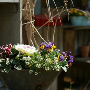 12月23日に投稿した寄せ植え。 ヌマヒノキ‘パープルフェザー’が紅葉して、渋い色になってる♪