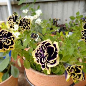こんばんは♪ 今回旅行先で、お迎えしたお花ペチュニア黒真珠🦪💓💓💓とタイムシルバー🩷 小さな葉っぱ🌱🌿がかわいい😍 いまは、ネメシアと寄せ植えしています😊 黒真珠は、ももいろハート❤️の隣でサフィニアとの間に囲まれていて まだまだ小さな苗🌱サフィニアが、ばかでかいし ももいろハート❤️も少し大きく育ってきたので まだまだかわいい小さな苗の黒真珠🦪です♪頑張って育ってねー🤗