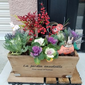 明けましておめでとうございます🎍 今年もよろしくお願いします😌 お正月飾りの寄せ植 紅白の葉牡丹さんと南天さんたち 水引作り初挑戦して添えてみました😊