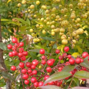 赤南天 と 白南天 玄関に植わってます😊 縁起物ですね‼️ たくさんの実がつきました🍒