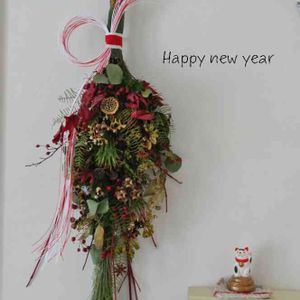①♡お正月飾りスワッグ🎍♡ ちょっと早いかな? クリスマス飾りをお正月飾りに交替。 シダーローズが開き切らす立体的なシダーローズに😅え ●正月飾りはいつ飾る? 12月26、27、28日、あるいは30日に飾るのが一般的です。 29日は『二重の苦』の意味から『苦立て』という縁起が悪い日とされるため、避けたほうがいいでしょう。また、31日になって飾るのは『一夜飾り』といって、年神様に対して誠意を欠く行為とされています。 29日と31日を避け、玄関(ドア)の正面に吊り下げて飾ってください。 お正月が過ぎたら、どんど焼きなどに出して炊き上げてもらうのが習わしですが、近年は環境問題への配慮から反対意見も出ています。お住いの各自治体の指示に従って処分してください」(神明堂)