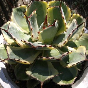 こんにちは。久しぶりにアガベの日に投稿します。 この子は【吉祥冠錦】 植物屋さんに分けて頂いて、3年くらいかな〜 かなりきれいに育ってくれてます。 朝夕少し涼しく感じるようになりましたね。