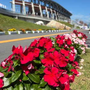 滋賀県に来ています❷ 滋賀国体、国スポ観戦のため 滋賀県 平和堂陸上競技場に 来ています‼️🏃♂️ お向えにそびえ立つは、 彦根城🏯 井伊直弼もビックリの 素晴らしい競技場🏟️ まわりには、お花🌼🌸🌺 が、いっぱい‼️