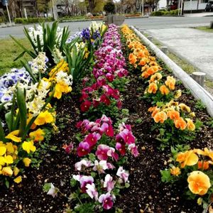 マキノの駅前の、きれいな 花壇💮🏵️🌹🥀🌺🌼🌱 (^^♪(*´∀`)❤(ӦvӦ。) (ノハラワスレナグサ (キンギョソウ ペチュニア)