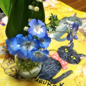 おはようございます。 (˶′◡′˶) 🏷️ニャンニャン祭り🏷️ 2枚目で〜す。🥰 スズランさん! 1本しか咲かなかったので、記念です。😄😊🙂 ネモフィラさん! ねこのエコバッグです。 いろんな😸ちゃんが沢山いますよ。🥰 今日は、☔降りなので、遊んでますよ。🥰 (⃔ *`꒳´ * )⃕↝。o(ヘヘヘ)