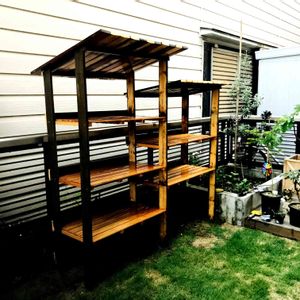 多肉棚をDIY‼️ 材料はウッドデッキを解体した廃材。 デカすぎて重くて持ち上げられず… 庭の入り口につっかえて入らず… 結局、いったん解体して搬入&設置。 さぁー整理するぞー👊 来週に…