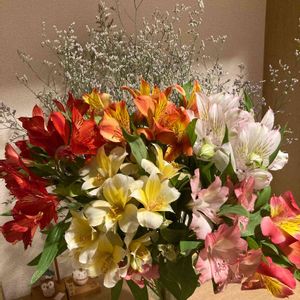 お疲れ様です☕️ 昨日も今日も どんより曇り空☁️ またまた頂きましたアルストロメリア✨ 元気な明るい色のお陰で気持ちも明るくなれました🎶😊