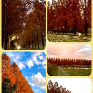 🌲メタセコイア並木🌲特別コラージュ 上:新緑の夏🌲、朝日を浴びて 中:紅葉の秋🍁 下:大雪❄️の翌日 1年を通して素敵な風景です✨ 今日も素敵な一日を🍀