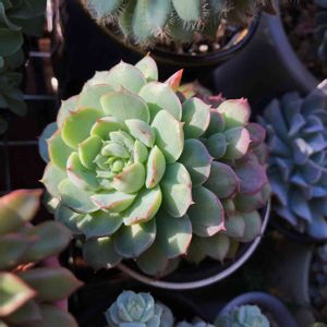 こんにちは🌞 今日は、とってもいいお天気です(*^^*)💕 多肉ちゃんの整理をしてたら、可愛い子発見👀‼️ ミリネちゃん 💕︎中心がなんとも言えないピンク色。 シャルルローズもオーロラもいい感じ😍😍😍