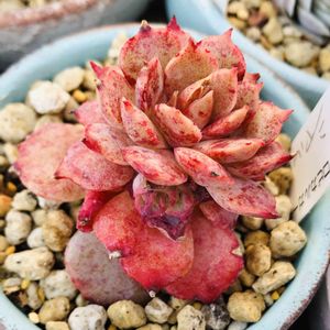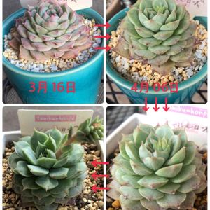 多肉植物 シャルルローズ 中心が開いて緑になってきたけど、 側面はまだコロコロっとしてて可愛い〜💕