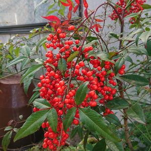 🍀🌻🪴💐🌹🌻🍀 🍀♥南天(ナンテン)♥🍀 💐南天(ナンテン)の赤い実、葉は緑のまま ででコントラストがとても綺麗です 💐南天(ナンテン)の花言葉は(良い家庭) (福をなす)です 💐南天(ナンテン)は、冬でも濃い緑が茂る 様子や赤い実をつける特徴から縁起物と して好まれています 💐南天(ナンテン)は観賞するだけでなく 実を焼酎、氷砂糖とともに漬け込んだ南 天酒は咳止めや喉の痛みなどの民間薬と して利用される他に(南天のど飴)とし て販売されています 💐和名の(南天)は、難を転じる(難転)や(成 天)の意味合いで,不浄をはらうと言われ ています 🍀🏵️🌼🌸🌼🌺🍀