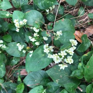 ツルソバ 蔓蕎麦 (タデ科タデ属) 長いツルを伸ばし成長し、葉も花もソバに似ているのでこの名がついた。 暖かい海岸近くに群生し、花期が長く冬でも花を咲かせる。 また黒い実を付ける。 名前がわからず、沢山の方が一緒に調べて下さいました。 どうもありがとうございました🙏