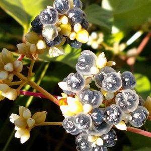 海辺に咲いてて、花のあとに黒い実をつけてました。