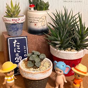 十二の日🏷️ 2のつく日は斑入りの日🏷️ オヤジ活🏷️ などで投稿させて頂きます🪴 今日も何かの記念日なのかな? と見ていたら 「ベビーカーにやさしいまちづくりの日」 というのがありましたので 時々登場させている 乳母車を一緒に並べてみました 田中達也さんのミニチュア作品展の 横の売店で見つけたのですが あまりの可愛さに もっと買ってくれば良かったな〜と 思いました 先月の多肉とみどりのマルシェで 硬葉系のハオルチアを二種 購入しました どっちにしよう?としばらく迷った末 特に高い苗でもなかったので 両方買えばいいじゃんね という結論になりました あつさんから頂いた十二の爪も 元気にしてますよ〜🪴💕 こちらの投稿で 名前タグをつけようとしたら ディスコイングシーの方が どうやらアロエだということが 判明しました😵 名札にはハオルチアと書いてあるんですが アロエなのね😅 来月からは7日に投稿しなくちゃね💦
