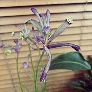 雪が降ってまたカンガルーポーカクテルは屋内に戻しました🏡 なんとか大丈夫だったみたい 屋外のポーはちょっと葉が傷んでます 暖かくなってほしいですね〜 3枚目は、10月購入時(左上) それからまた花芽が育っています