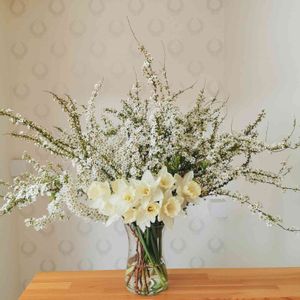 実家で摘んだ水仙と雪柳を飾りました 雪柳の花びらがはらはら散りますが、たくさん咲いてくれると飾りたくなりますね🌿