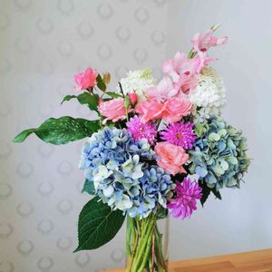 実家の花でアレンジ 秋色紫陽花 ライムライト グラジオラス バラ ダリア カラー(葉) 0円アレンジ🤣