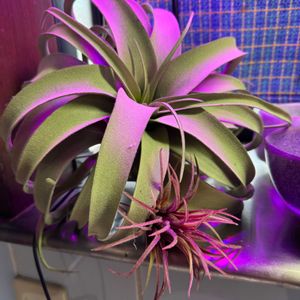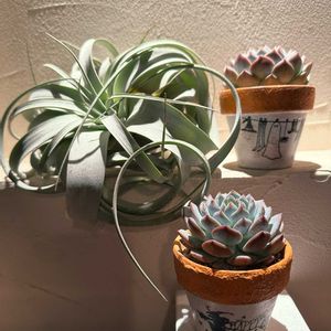 エアプランツのキセログラフィカさん🩷 冬は少しだけ紅葉してたみたいだけど、最近はまた色白に戻ってきました🤗 新葉も出てきてかわいいです🥰 手前にあるのはフクシー🌿 これ以上大きくなりません😅