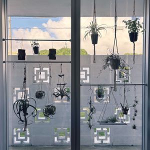チランジアたちを外に出しました。 カプトメデューサエはもうすぐお花が咲きそうです。 大きめのガルドネリは網板に乗せきれなかったので、アーチにワイヤーでくくりつけてみました。