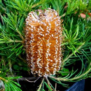 タワシ?付きのをお迎えしました!😃うちでは、初のバンクシア地植えにしてみようかと思ってます♪この秋、庭の一部を土壌改良して、出来るだけ水はけの良い場所を作ろうかと…😊 この冬、寒くなるそうなので、積雪⛄が心配です😅