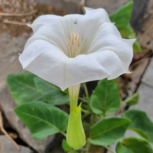 川沿いのミニ花壇で、今日も咲いています🤍 日本の朝顔とは全然違って、なんかちょっと不気味🦆