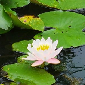 散歩中の池に、一輪だけ咲いていまた🎶 少し離れてたので、手と体を目一杯伸ばして、落っこちないようにして…パチリ🤳