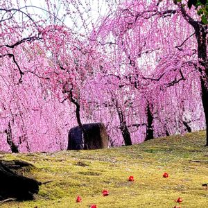 今年も行ってきました😊 満開のしだれ梅と落ち椿のセット 綺麗でした💕