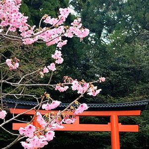 なに桜🌸かわからないけど 鳥居の前でお出迎え🙌 昨日のpicです 今日は☔ どこに行こうかな? WBC⚾️見ながら考えよーと🎵 ~⛩️霧島神宮~