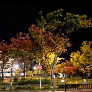 お散歩で…🚶♀️ 街灯に照らされて綺麗な紅葉🍁でした