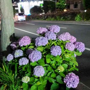 💜アジサイ💜 歩道脇にモコモコ綺麗でした✨ 楽しい夜のウォーキングでした