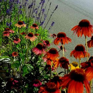歩道脇にカラフルなアジサイさん💙💜💗 楽しそうに咲いてます