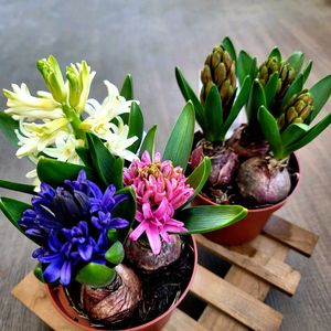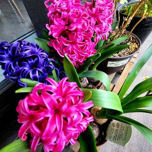 ~HYACHINTH~ 今年は①鉢植えと②水栽培にしました ベランダに置いてるせいか早く咲き出したみたい✨ ほのかにいい匂いがします😊 ②水栽培はこれからが楽しみ😌