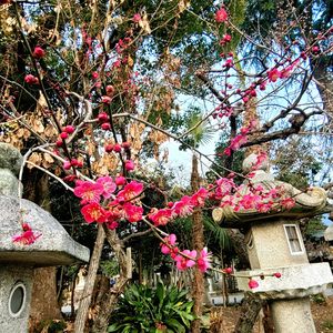 いつもお参りする⛩️で… 今日は暖かくて🚶♀️いても気持ち良かったです😊 綺麗なミモザ🟡 ⛩️の方もやっと咲いてきました❣️と仰ってました vitamin充電🔋できたし頑張って仕事しよーと💪🍀