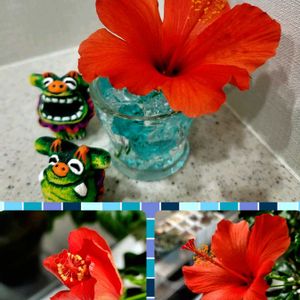 今年2輪目の🌺ハイビスカス🌺 も少し見ていたいので一輪挿しに…😆 ←昨晩咲き始め →今朝咲いてました