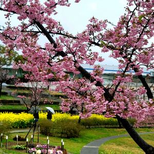 ☔なので🚙でと~ちゃこ😉 河津桜🌸と菜の花🟡のコラボ 今日は冷たい☔でした🥶