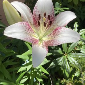 LAユリ スイートザニカ 白地に吹きかけたように赤紫がのる独特の花色