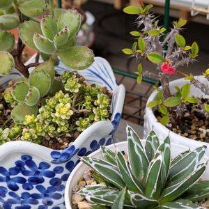 丼!!! エケ系1種とセダムの丼をつくるのにハマってます ひとつ5分かからずでできるのにかわいい、、強い、、🔥 pic.2 ケッセルリンギアナの丼 七福美尼の丼 pic.3乙女心の丼 ハートチョイスの丼 pic.4 この組み合わせわたし的最強🫶🏻︎💕︎︎ どんな感じに成長してくれるのか楽しみです✨