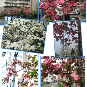 『桜の次は私たちよ!』とばかりに 鼻水木が咲き乱れている。 会社の通勤路の街路樹の花水木は 白、薄いピンクと濃いピンクの違った色が見られる