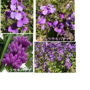 東京都瑞穂町カタクリの里で見つけた ムラサキハナナ 左下はAmazonで見つけたムラサキバナナ
