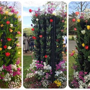チューリップ🌷が素晴らしく見頃の昭和記念公園 最寄駅の一つ、立川駅では昭和記念公園の案内と花たちが飾られ期待を高める