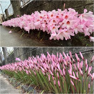 🌱ゼフィランサス こんにちは ご近所のお宅 門から玄関へのアプローチです‥上のpic は今朝雨の合間に🐶との散歩時 見事に満開でした。 下のpicは昨日夕方🐶との散歩時に撮影しました。